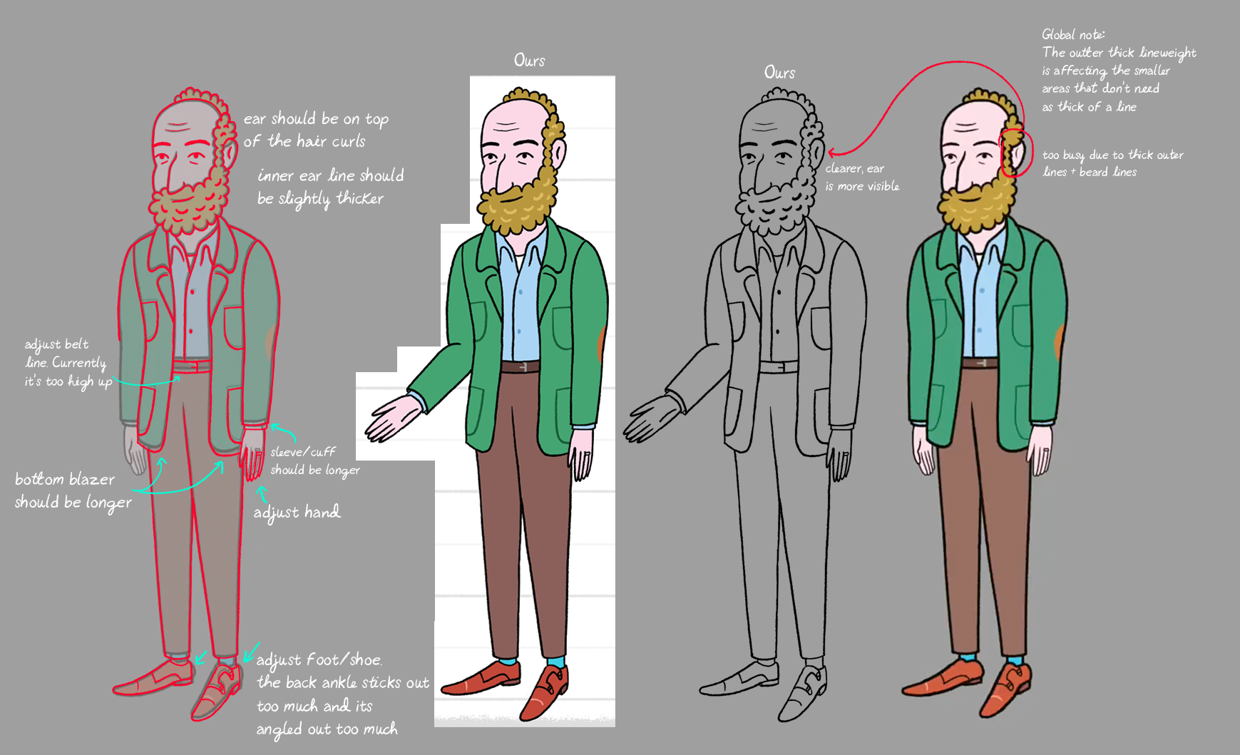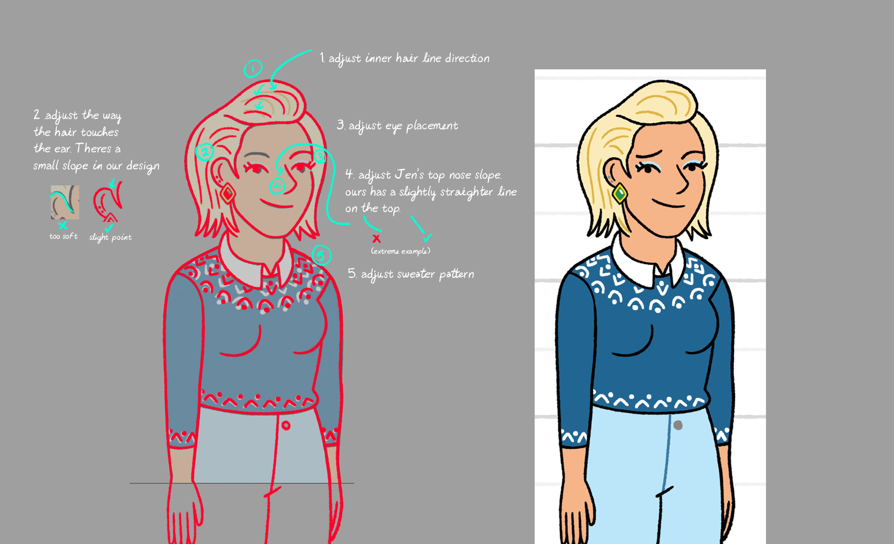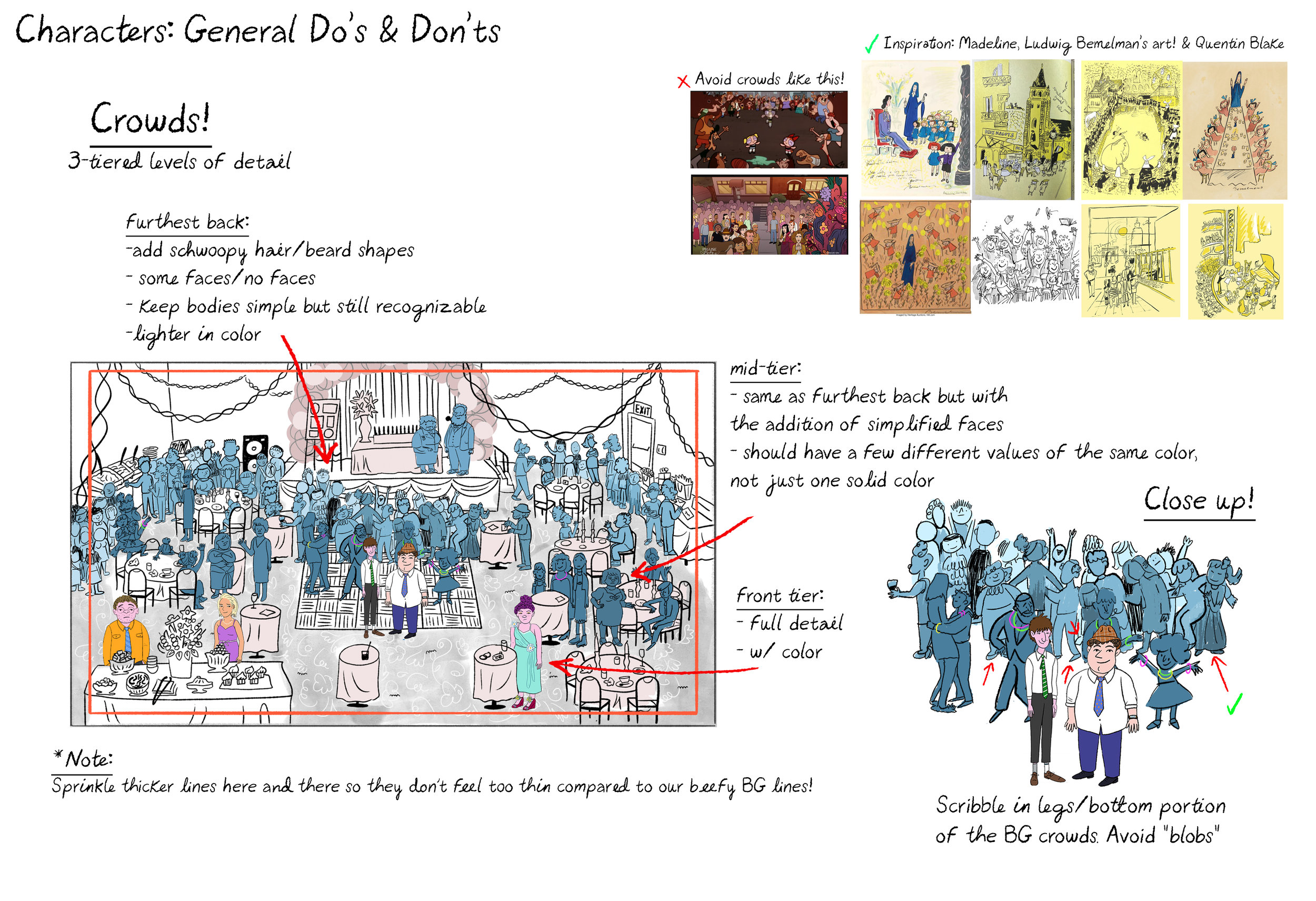 Each character had a specific quirk and era in which I guided myself with. As an example, we looked at old family photos from a specific event, in a specific year, specific age group, and more. Research is highly key to getting these characters more recognizable for our audiences.
