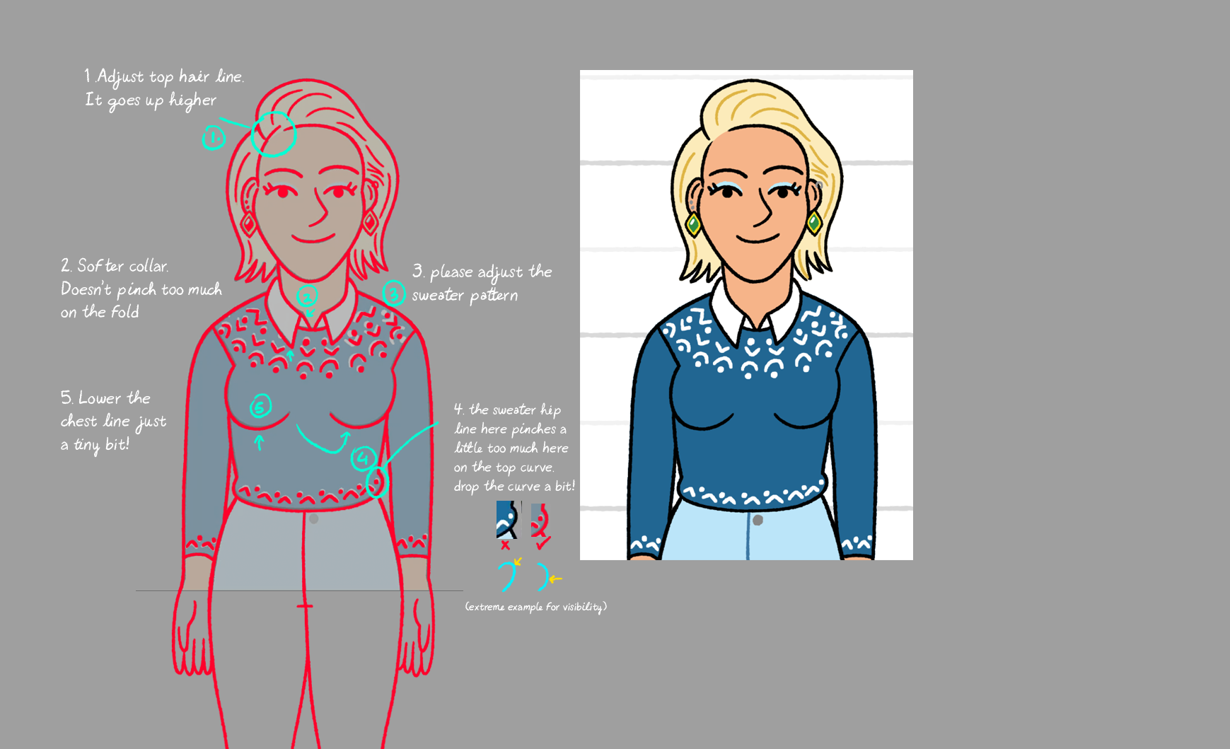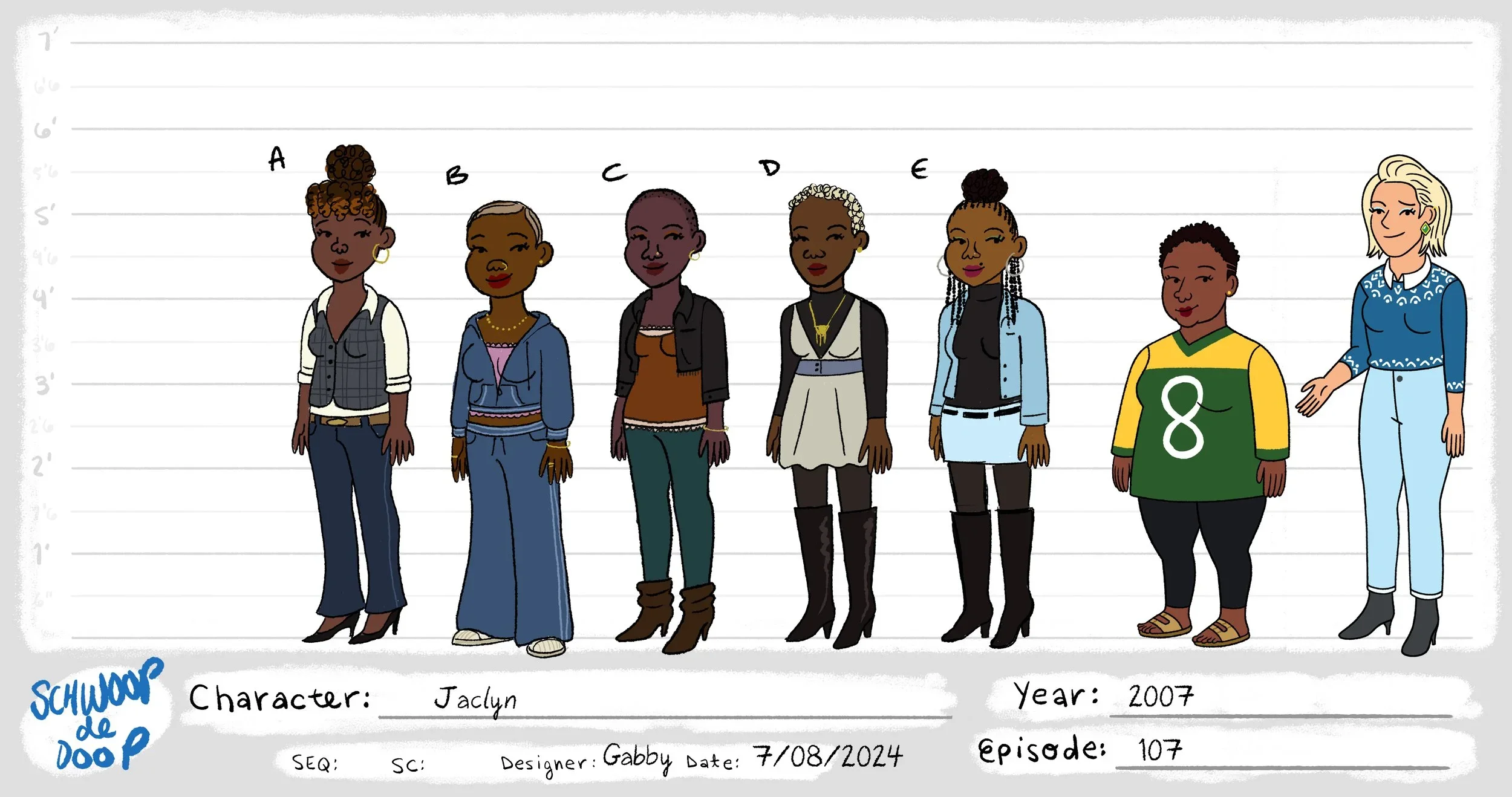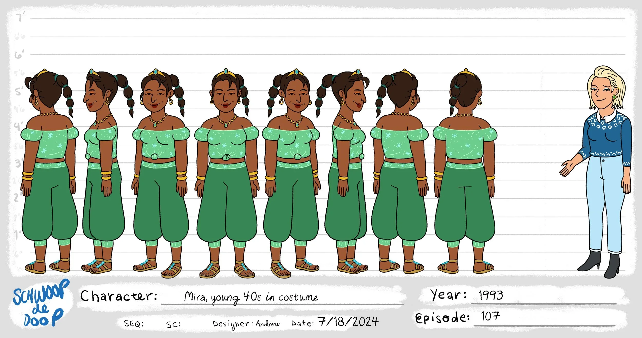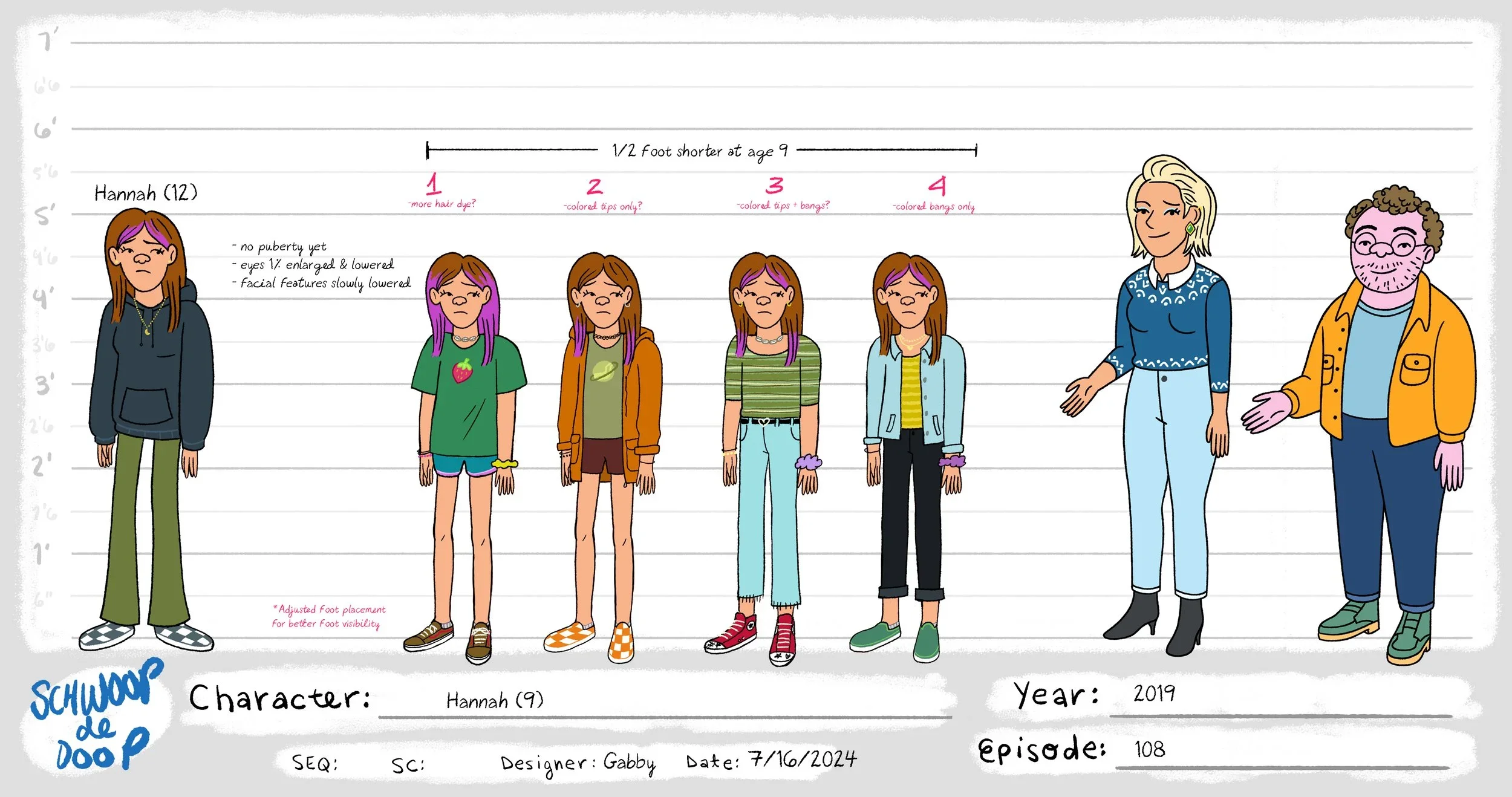 As the Lead Character Designer on this exciting new show, I have the honor of guiding a talented team of artists while collaborating closely with our vendor partner. I’m fortunate to work alongside the incredible Lisa Hanawalt and Alison Dubois. My role involves providing support through drawovers, model sheets, turnarounds, special poses, script-focused designs, costume design, creating a style guide and more. My focus is on fostering creativity within the team and ensuring that our collective vision comes to life.